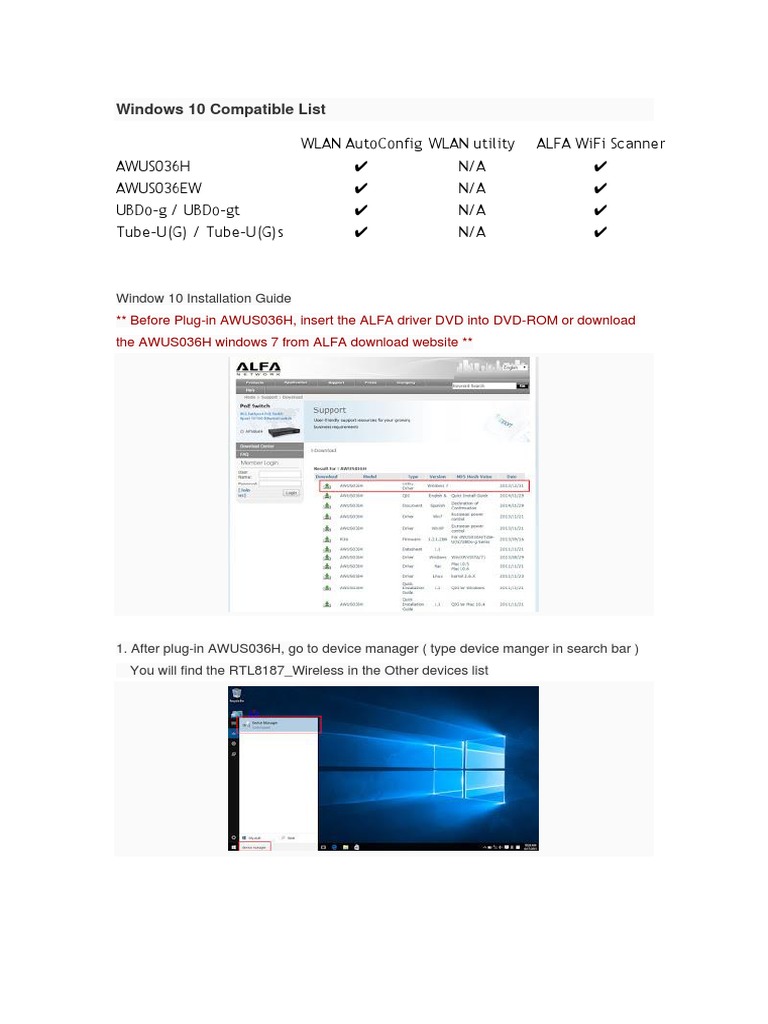 for "Driver Awus036H Windows 10 : Alfa Network Model Awus036h Driver Windows 7 Free Download"